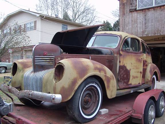 Ray had been working on a '49 Chrysler, but had to put it on hold in the shed in order to devote his time to this New Yorker. He painstakingly obtained the necessary parts, put it together, decided on an upholstery and paint scheme, and eventually had the car you can see on the cover. By the way, the '49 Chrysler that Ray put on hold...he began working on it again and it is finished. He realized that the car originally had a visor on it, but it was missing, so he kept an eye out for one. One day on his way back from Hartselle, he stopped at a junkyard and the first thing he spied was a visor just like the one he needed. He found the owner and inquired about purchasing it. The owner didn't want to take it off the car. Ray bought the visor, It simply had a car attached to it. Now Ray has a '48 New Yorker and is working on it as well. You know how one thing leads to another! |